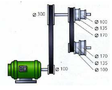 7. Calcula las velocidades que se pueden transmitir con el cono de poleas de la figura