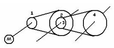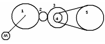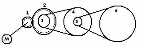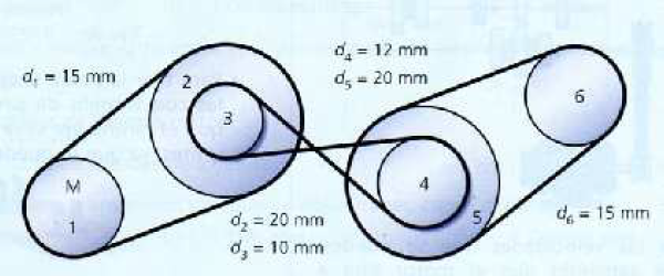 5. Calcular la velocidad de salida del siguiente tren de poleas. La velocidad del eje del motor es 2.000 r.p.m.