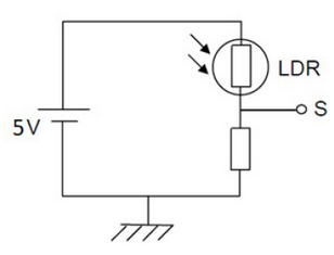 Ejemplo: Supongamos un circuito formado por una LDR, como el de la figura. Consideramos como señal de salida del circuito la tensión en el punto S.