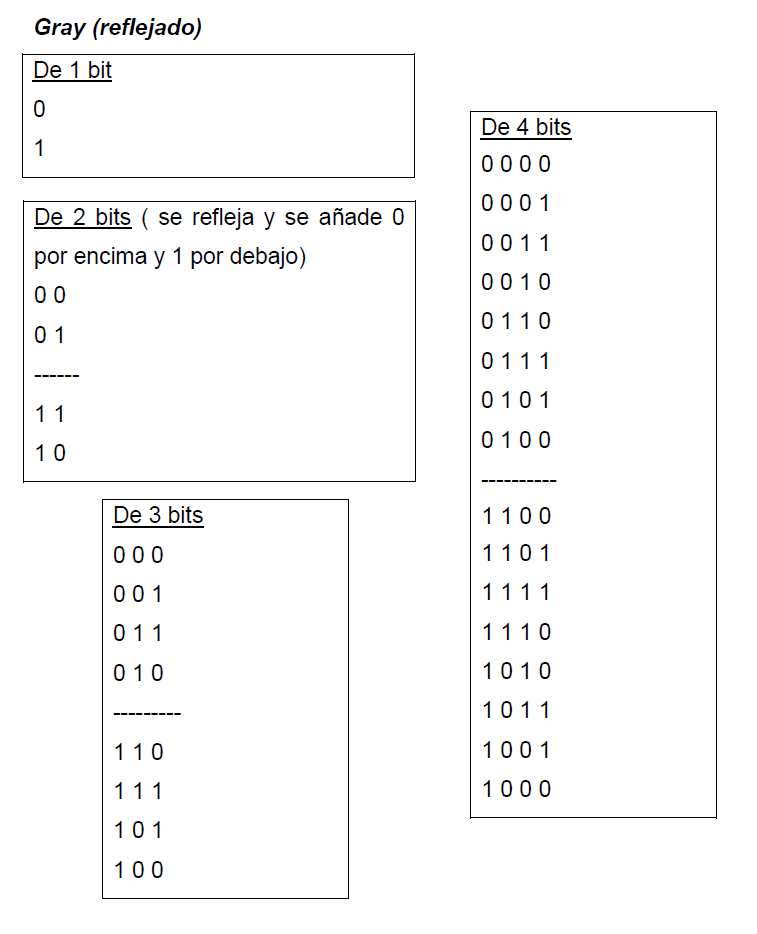 - Códigos continuos. Si las combinaciones correspondientes a números consecutivos son adyacentes (aquellas en las que sólo varía un bit)