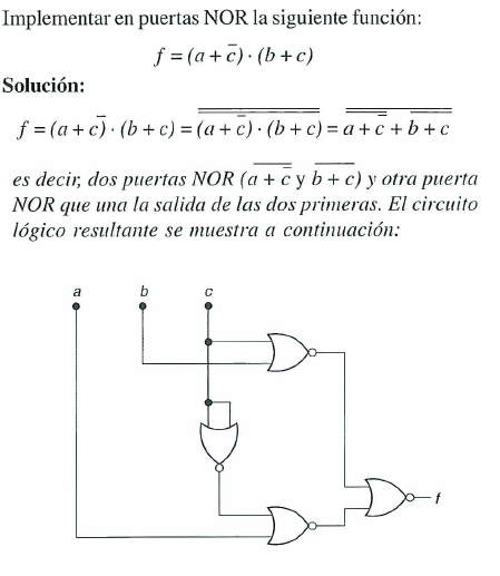 c. Implemetar la función mediante puertas NOR de dos entradas