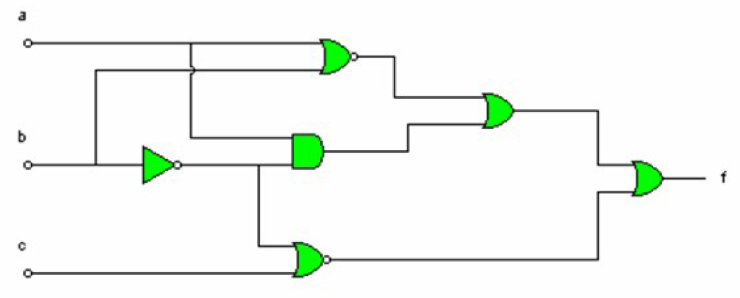 - Cuando estén cerrados simultáneamente “a” y “b” y no lo esté “c”.