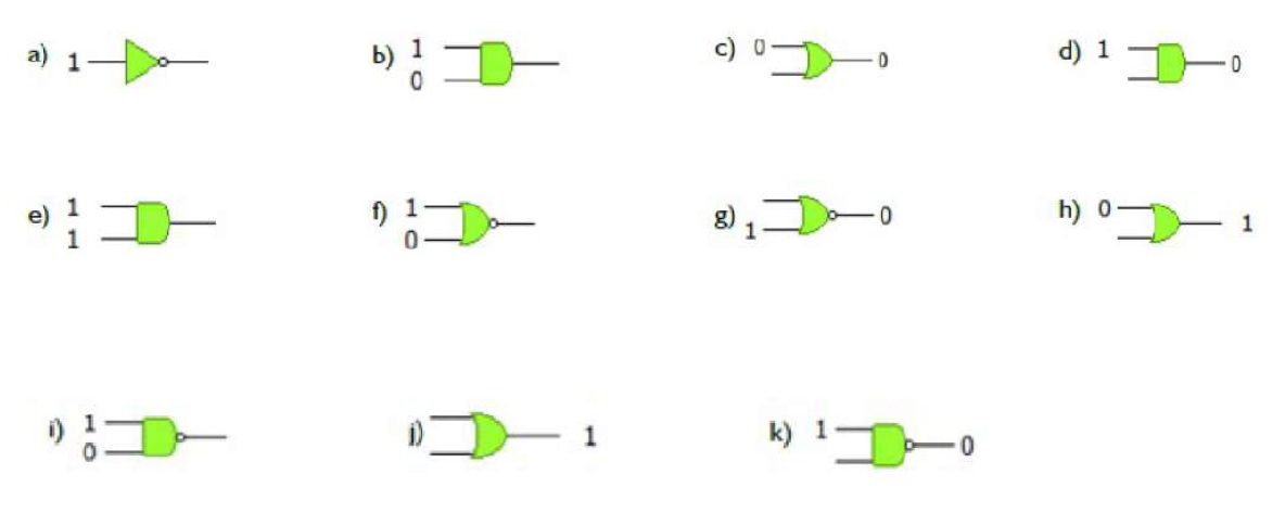38. Diseñar un circuito con puertas NAND de dos entradas e Inversoras cuya función de salida sea el producto de dos enteros comprendidos entre 0 y 3, codificados en binario A (a1,a0) y B (b1,b0).