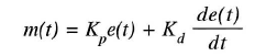 En el control proporcional y derivativo (PD), la salida del bloque de control responde a la ecuación: