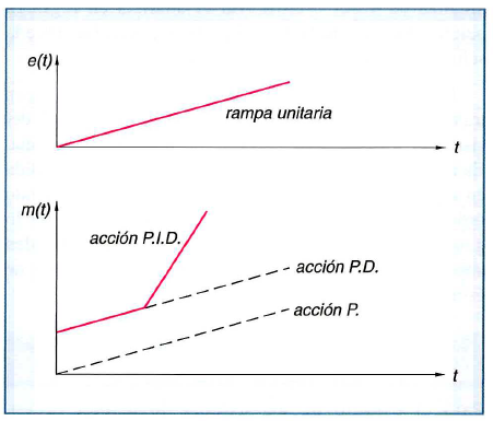 La respuesta de un controlador proporcional y derivativo ante una señal de error del tipo rampa unitaria:
