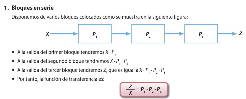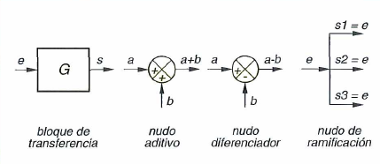 Para realizar el estudio de un sistema de control, el primer paso será descomponerlo en sistemas o bloques más pequeños que permitan un estudio más sencillo del sistema. Cada uno de los subsistemas que forman el sistema de control se representa gráficamente mediante un bloque funcional caracterizado por su función de transferencia. La unión de todos los bloques funcionales de un sistema se realiza mediante flechas que indican el sentido de circulación de la señal a la que representan.